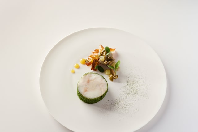 - Laqué au beurre de carcasse, scarpaccia de courgettes de kolbsheim, tomates confites