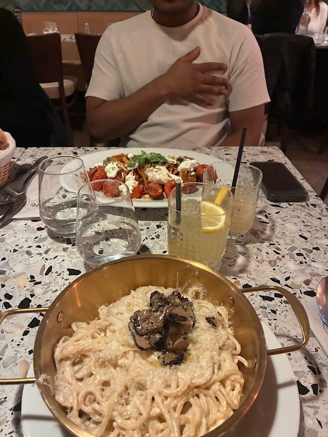 4.5/10The restaurant claimed to have no details of our booking despite the email confirmation I showed them. Eventually we found our booking in their book and found our table with my name already on it. (Another diner had the same problem). The waiter ignored us for a while and then just wandered off to do something else while taking our order. The food was ok but one pizza came with anchovies and another with truffle oil, neither of which were mentioned on the menu. No ice turned up despite asking for some twice. All in all it was a disappointing experience.