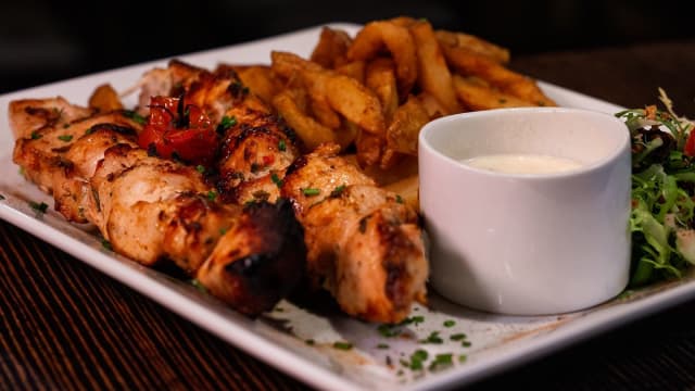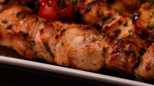 1 entrecôte, 1 côte de veau, duo côtes filet d'agneau. Duo brochettes de poulet.