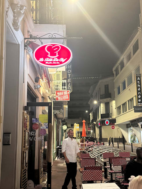 10/10This restaurant may be quirky and not the poshest in Cannes, but the food is great and the surprise menu makes for a memorable evening!