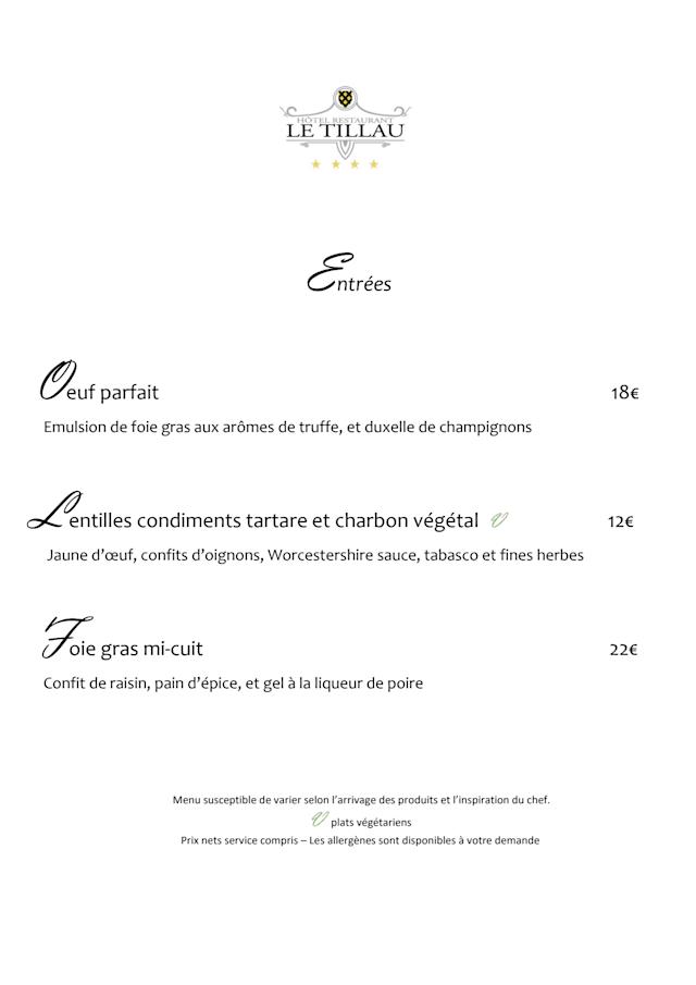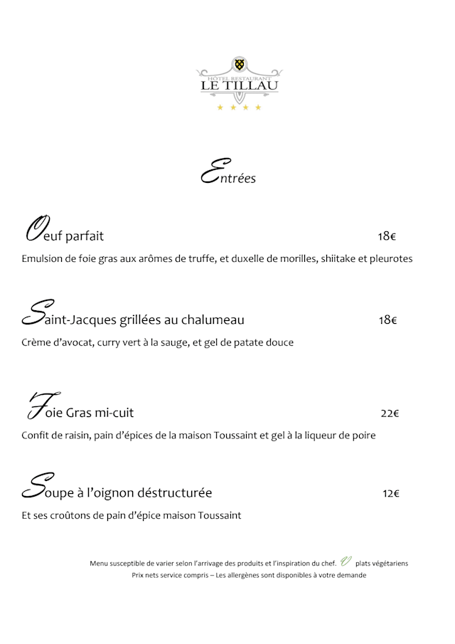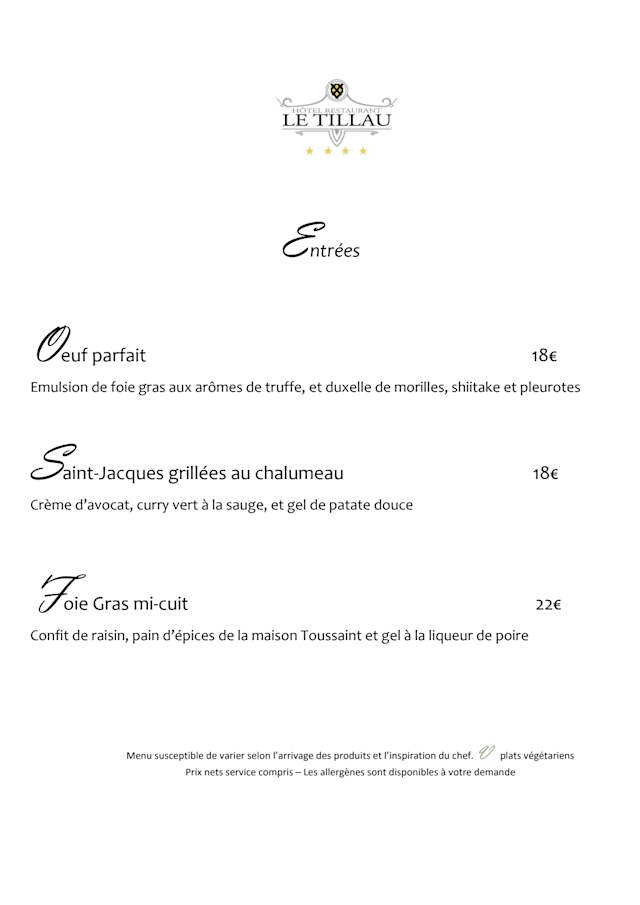 10/10Beautiful restaurant, excellent food and service. Every time we eat at Le Tillau it‘a such an enjoyable experience !