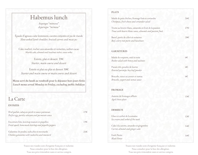 Menu unique Dîner à La Table Haute (boissons incluses)€130 per guest