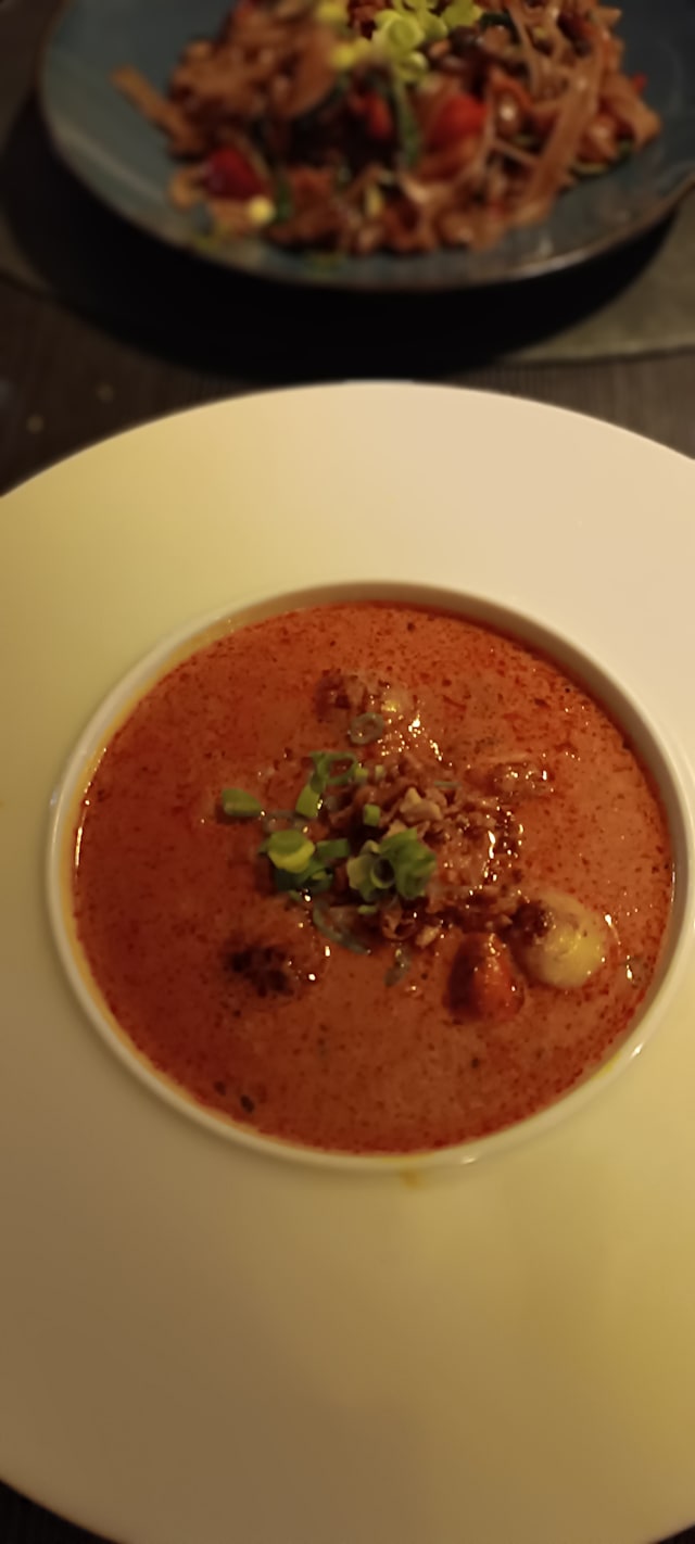 (Poireaux, champignons noirs, carottes, basilic thaï, lait de coco)