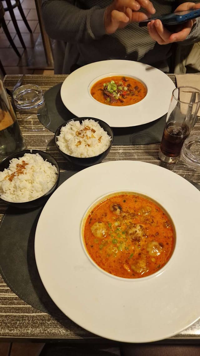 Curry rouge, fruits de mer, riz