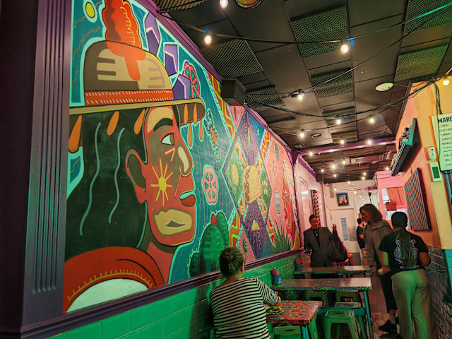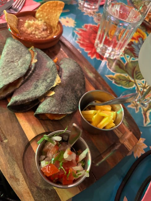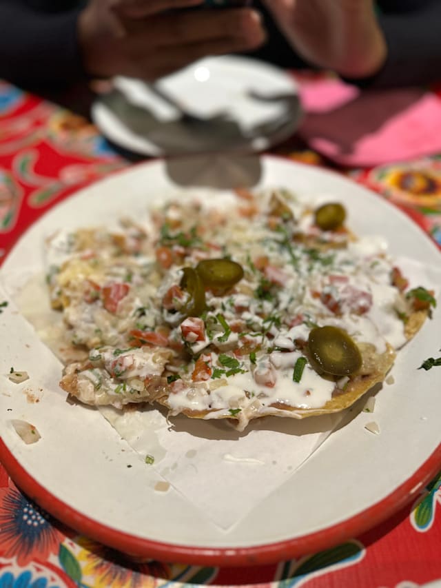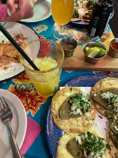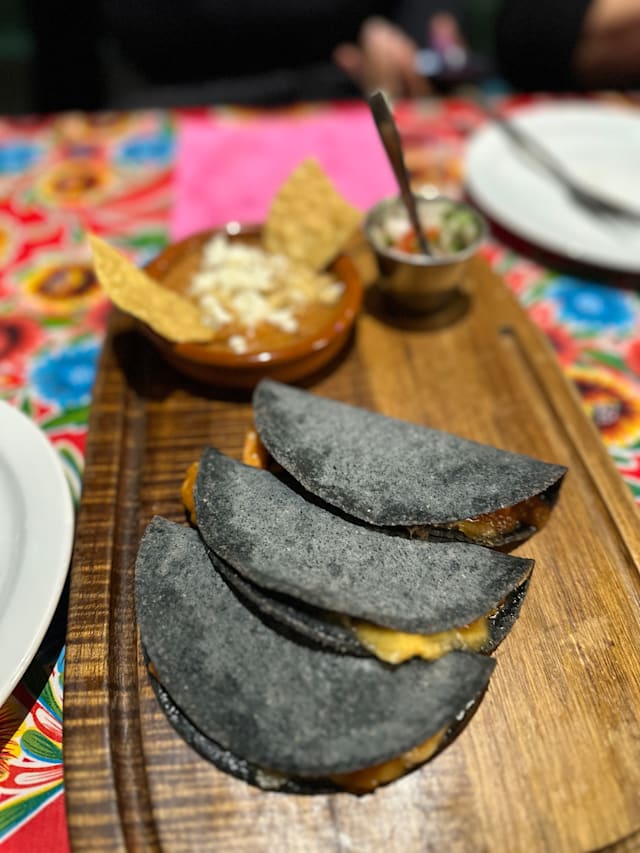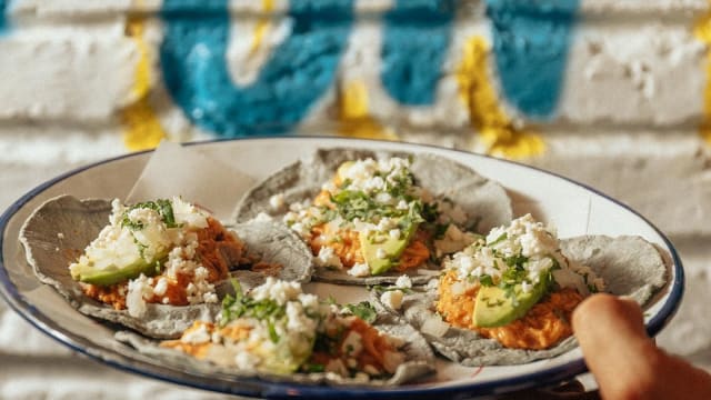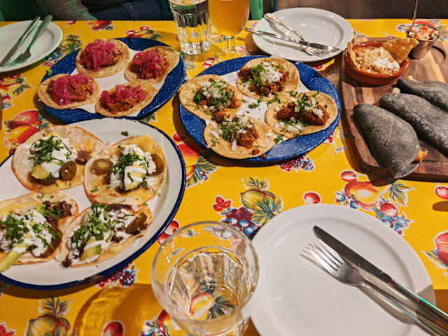 6.5/10Food was ok, 3.5/5. Tacos pirata, charros and corn cake were definitely the highlight. Really good and highly recommend. However, the classic carnitas and Gringa Quesadilla were really disappointing. Classic carnitas didn't have flavour and were not she classic shredded pork you expect. Gringa is very oily and greasy, not recommend at all. Also a bit tasteless. Anyway, worth the visit. Maybe we just picked 2 poor-average dishes out of really good ones they have? Again, pirata and charros really worth the try! We are also used to fresh corn tortillas and homemade totopos, so having nachos from the bag is always disappointing, but again, qualify/value is ok. Good portions.
