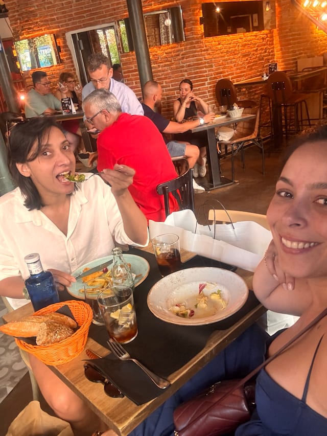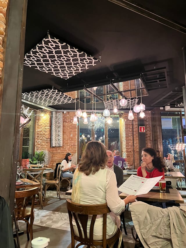 8.5/10This is my favourite restaurant in Madrid, the food is good and the atmosphere is so nice! I really recommend the tuna and the cheese platter. The deserts are good too.