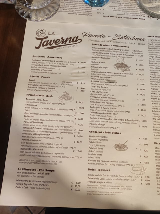 10/10Amazing experience at La Taverna bisteccheria pizzeria! Good environment and great food! Excellent service and nice prices!