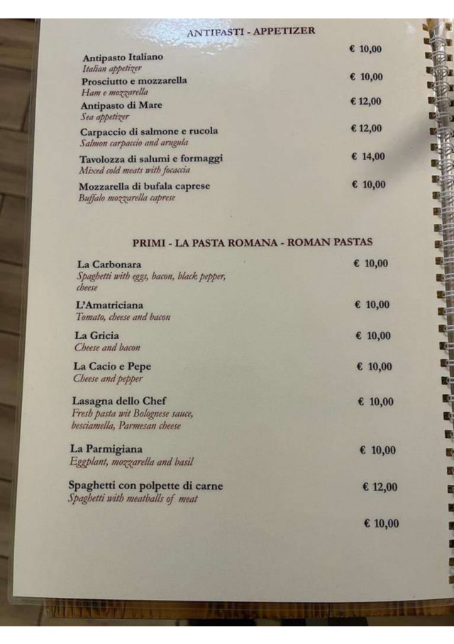 9.5/10Best food we had in Rome. We had ravioli and ox tail with a caprese salad. All well prepared and had that “nonna” taste.