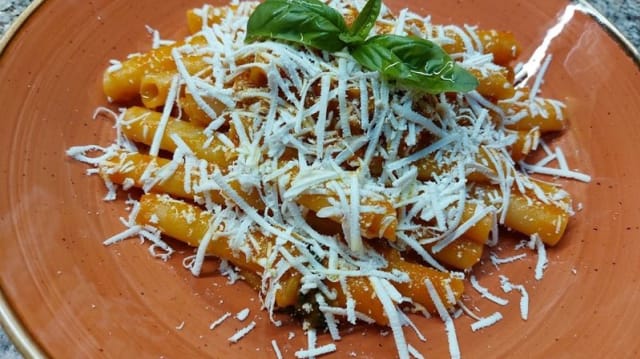 Con farina di grano duro, pomodoro, melanzane, ricotta salata