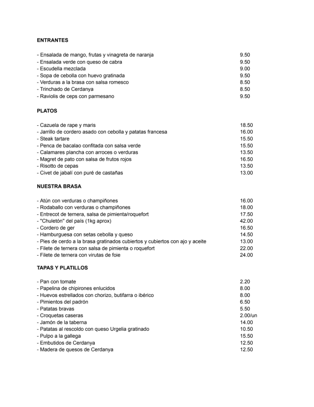 9.5/10Seated in a secluded place by the window. Waiters very attentive. One spoke English, unusual in Cataluña. We were on a fairly tight time schedule. They made sure that we were served in a timely manner. All the food was interesting, beautifully presented, delicious and good value. I adored the home made cheesecake. Worth going back for.