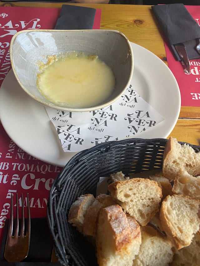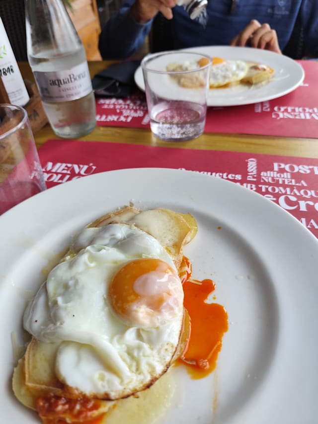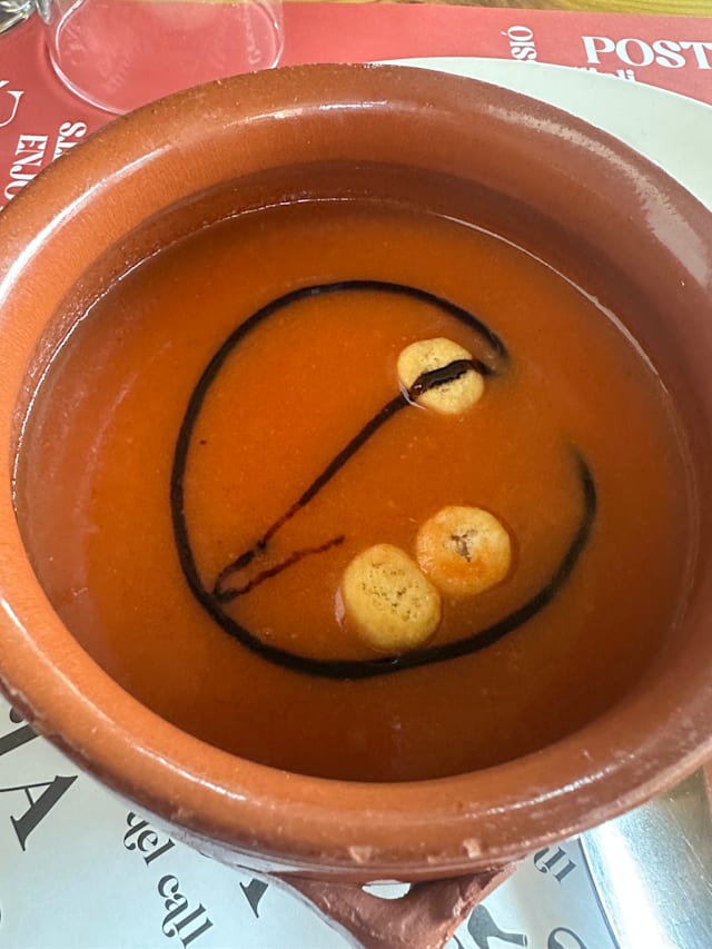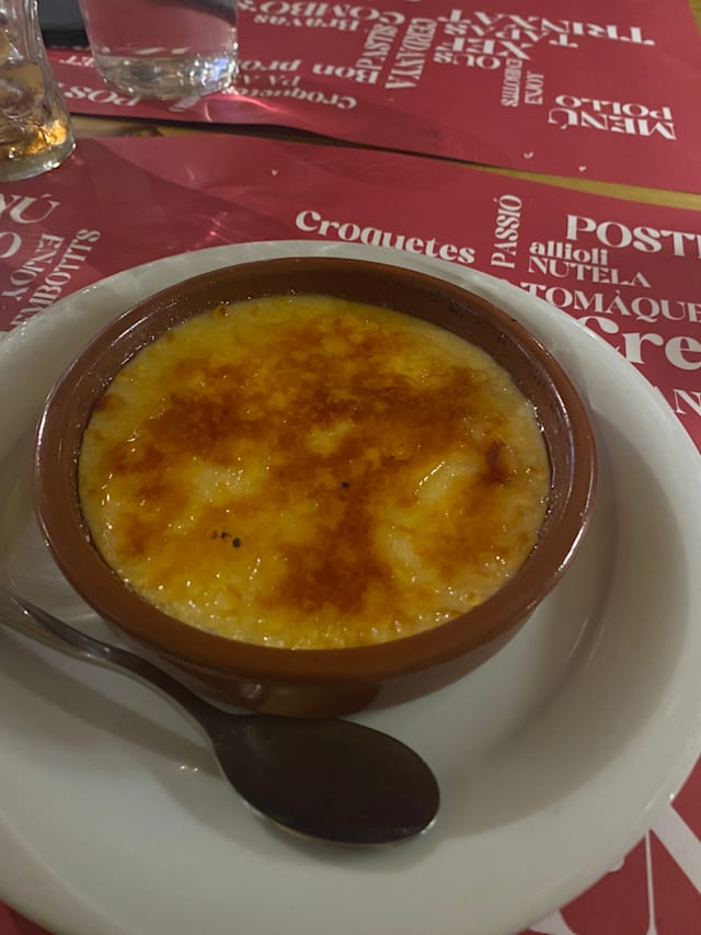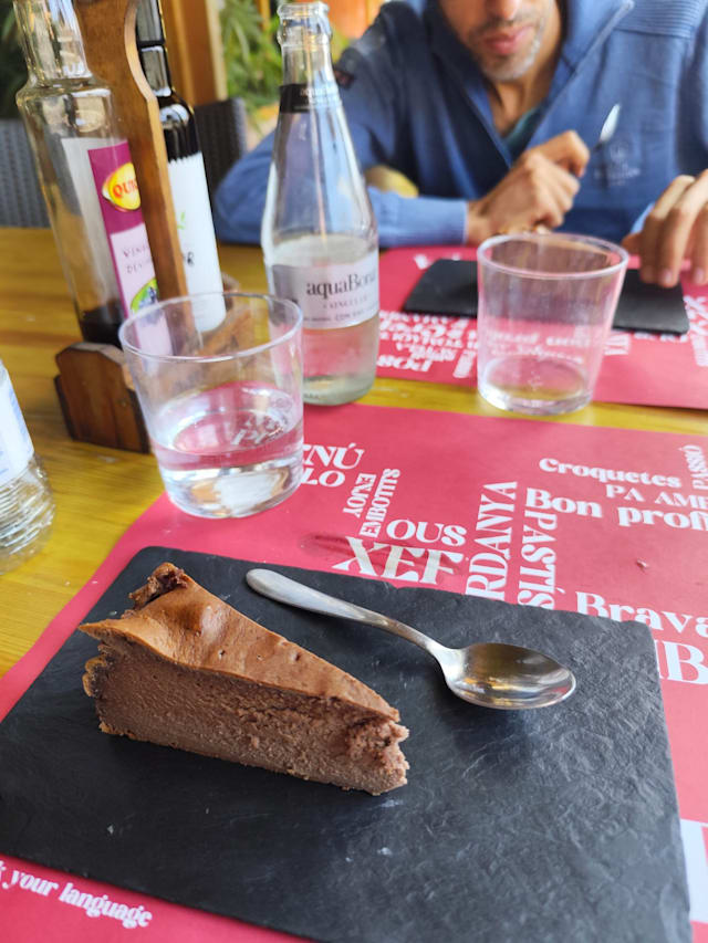 Seated in a secluded place by the window. Waiters very attentive. One spoke English, unusual in Cataluña. We were on a fairly tight time schedule. They made sure that we were served in a timely manner. All the food was interesting, beautifully presented, delicious and good value. I adored the home made cheesecake. Worth going back for.