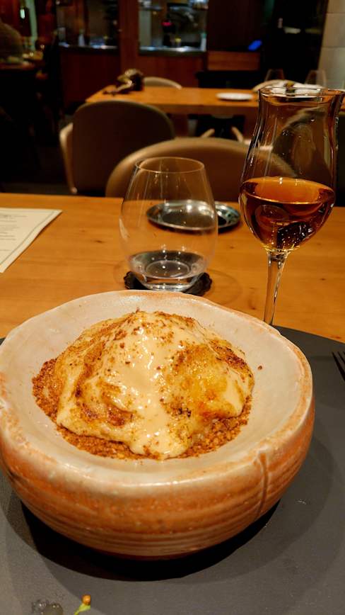 5.5/10We were the first to arrive I think. Start of service. The main waiter was anything but welcoming. We ordered the 80€ menu as we can not afford more than that to be honest and we wanted to experience a Michellin associated resturant. The first four courses were rather lovely to decent. One squid dish was just a over garlicy undercooked mess. And then, the first main course of Cod fish was bland and tasetless, in all honesty I have never tasted anything as bland as that dish, and when the waiter came to check on us and saw plates less than half eaten he shrugged it off and said nothing. The next course was something resembling pulled pork bits in between two slices of pork skin with a topping of burnt onions and a thin slice of potato with a heavy and unflattering sauce. Really left a bad taste in our mouths. The desert was a syrup drenched french toast with ice cream. I would like to mention that they do offer cheaper than expected drink. All in all a very disappointing evening. 4/10