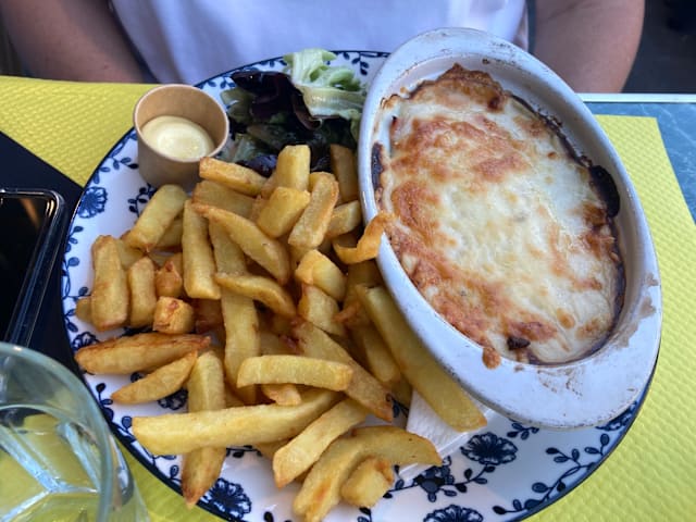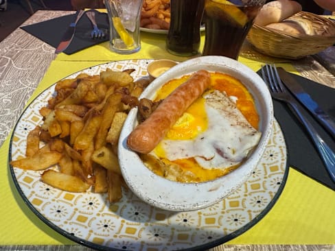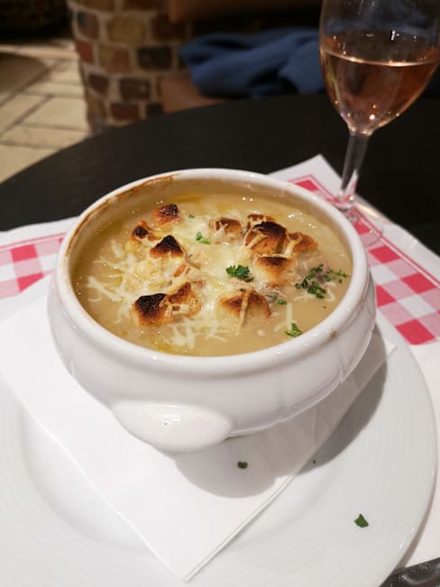 5/10The onion soup and Welsch were outstanding, but the fries were excessively oily, which caused discomfort later. The restaurant’s location, directly opposite the railway station, is excellent and convenient for tourists. The ambience was great, but the overall quality of the food could improve, particularly in terms of preparation.