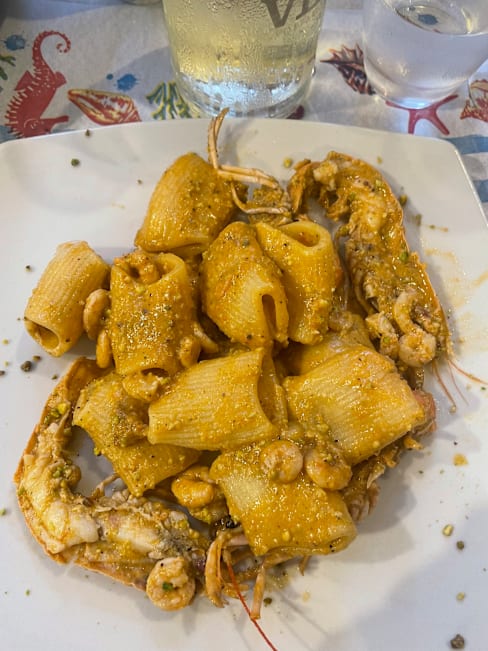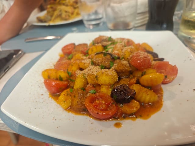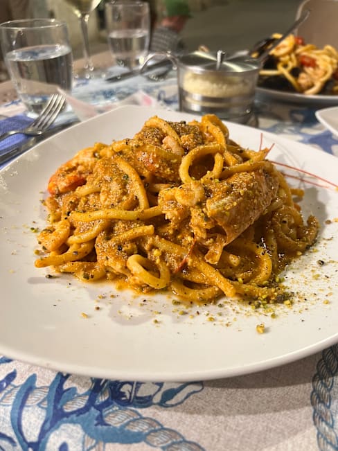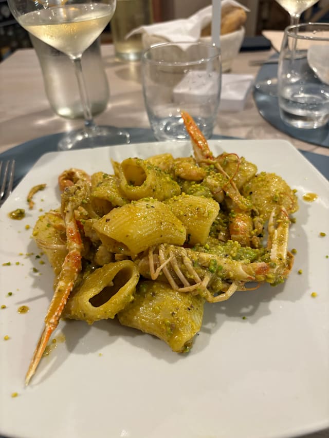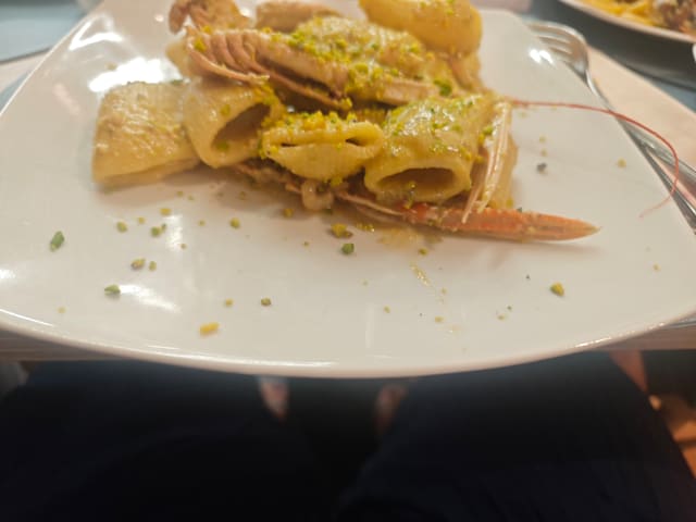9.5/10After the confusion with which of the 2 restaurants we were booked into so it might be an idea when you book with the fork someone from the restaurant should indicate which one instead of getting loads of shrugs from the waiters and a lot of Italian hand gestures from a person sitting at a table by the bar who I presume was the owner. It was very busy in our restaurant when we were seated so no time for “Would you like water for the table naturalie or fritzanti” However we cheered the waiters up and made them smile and we had a laugh. Food was excellent fish was the freshest we had had in Ortigia so far. And the price was reasonable too