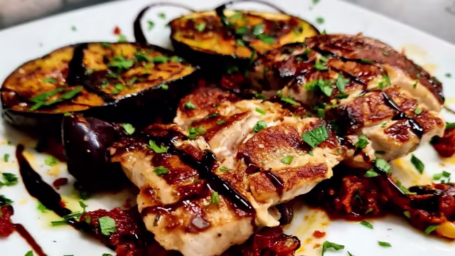 - Pesce Spada alla siciliana (melanzane,olive capperi capuliato glassa balsamico)