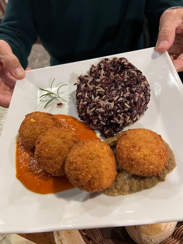 Paella di pesce o Fritto misto di calamari, alborelle, gamberetti e verdure pastellate + calice di vino