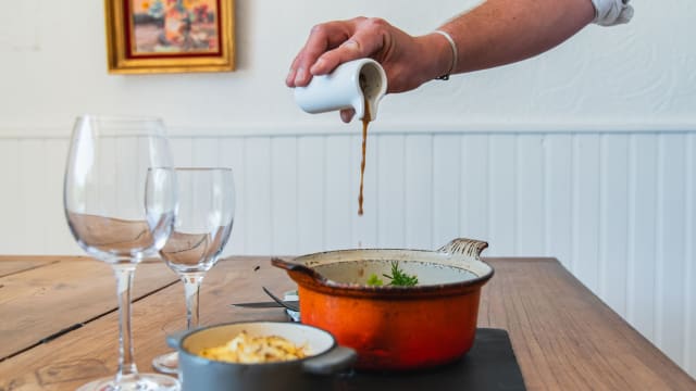 10/10All staff were extremely warm, and accommodated our need to communicate mostly in English. I also have a nut allergy, and Mathieu was so helpful and kind in explaining my dessert options and explaining the menu. The food was also amazing!! The stuffed zucchini starter was perfectly cooked and flavorful, and the sea bass with lemon risotto was perfect. The fish melted in your mouth, and the risotto was perfectly al dente, and paired amazingly with the sea bass. One of the, if not THE, best meal of our trip spent in Paris and the Luberon. Merci!!