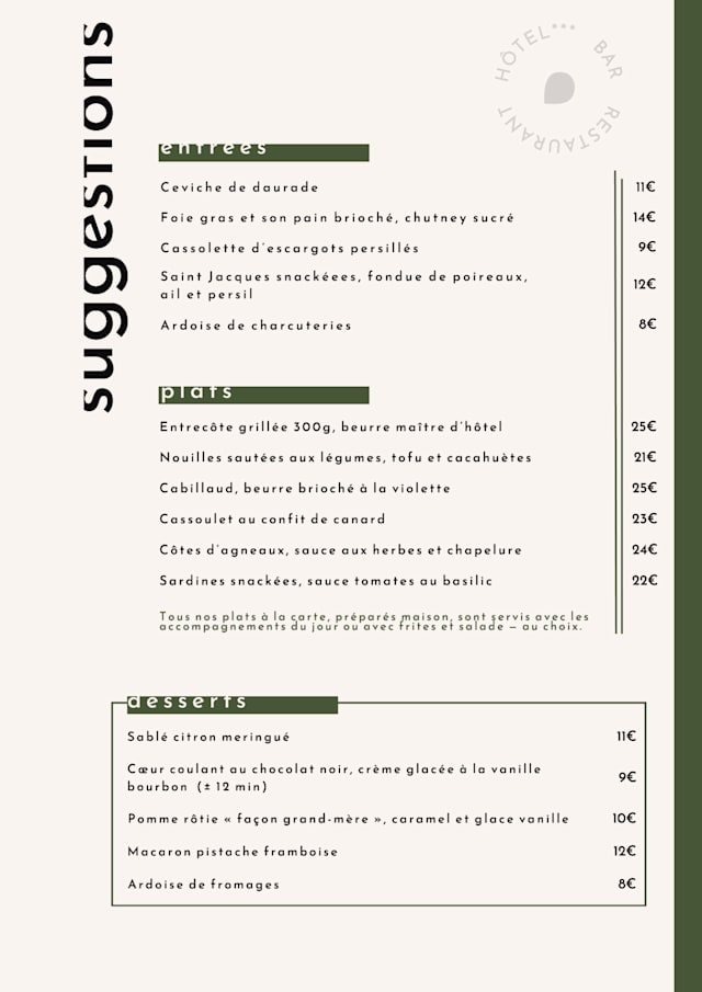 TRADITIONS – Le restaurant vous propose une cuisine soignée, faite à base de produits frais, régionaux de préférence, choisis avec soin chaque jour par le chef, Gér...