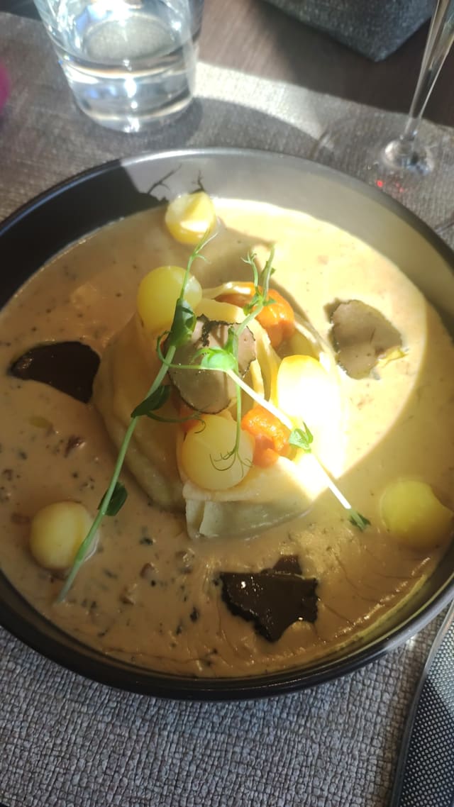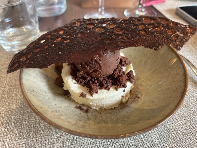 10/10A great find in Divonne-les-bains. We had the plat du jour which was a quinoa salad that was well seasoned, followed by a cuisse de poulet with tender meat falling from the bone. It was delicious and served with grilled cauliflower, roasted potatoes in a delicious sauce. The wine that came with the menu was a perfect accompaniment. The meal ended with a delicious warm chocolate cake. We’ll return the next time we’re in town. Excellent service too and delightful setting.