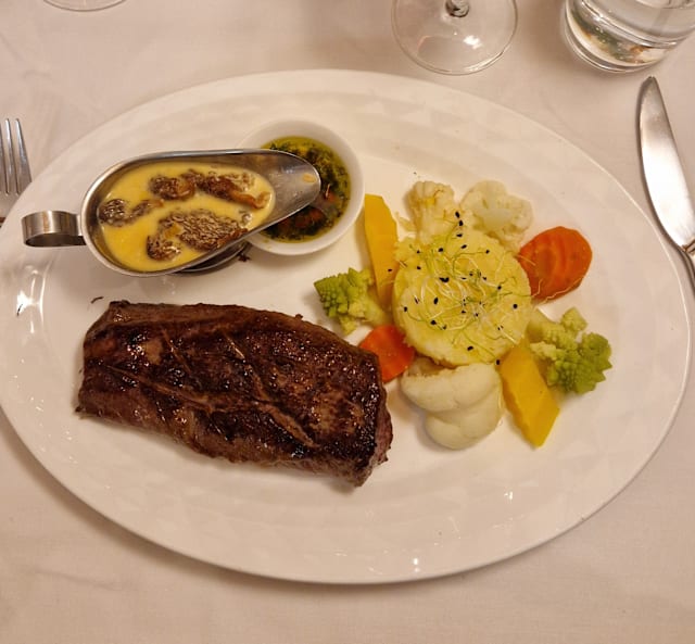 7.5/10We arrived early, so we received our main dish entrecôte very fast. The quality of the meat, the french fries and salad were very good. Unfortunately we had to wait more than 50 minutes for our dessert. The person in the kitchen was alone. I would have expected that they let us know in advance. When we got the bill they told us that the desserts (ordered on their carte) were not part of the fork offer. This should have been mentioned by the server, when we ordered the dessert. Positive that they offered the espresso for the long waiting time.