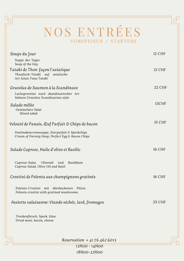 3/10I am extremly disapponted to have spent 130 CHF per person and the food was a diaster and they mixed up the orders several times. For a such a price you could expect way better!