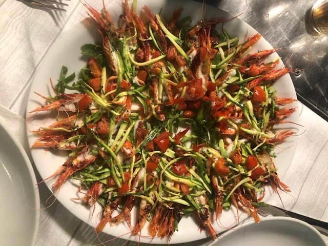 Insalata gamberi e pomodorini, e cipolla di tropea