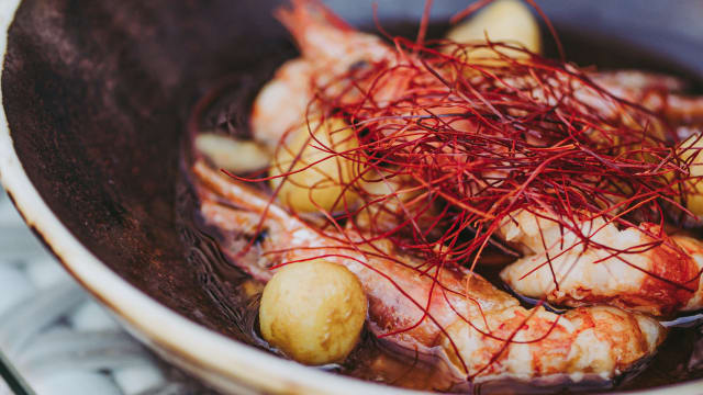 Langostinos flambeados a la grappa