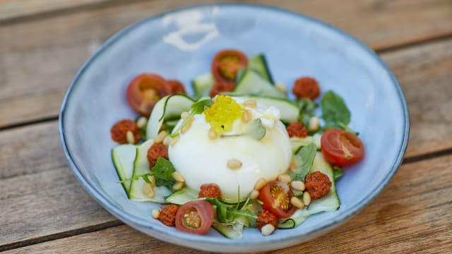 Burrata D.O.P. puglia con berenjena asada