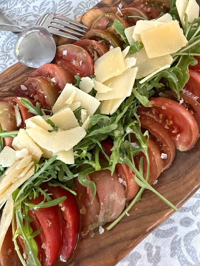 Calabaza asada al horno con queso feta o lascas de parmesano, rúcula y aliño balsámico