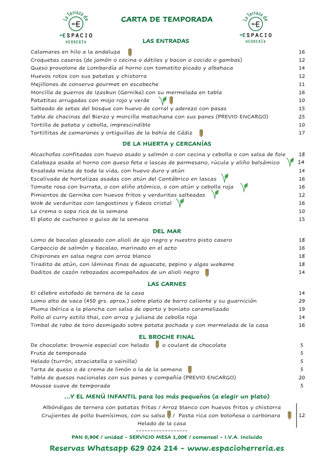 La Terraza De Espacio Herrería is identified as offering vegetarian cuisine.