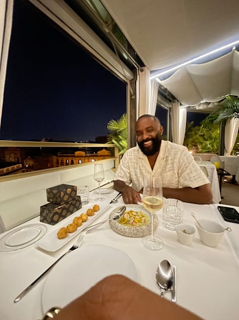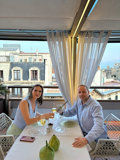 Dear Ian, Thank you for this positive review. It's gratifying to hear that your visit to La Terraza Del Claris was a memorable one. We are delighted that you appreciated the attentive service, the ambiance of our rooftop, and the culinary offerings during your lunch. Our team takes pride in creating a comfortable environment with elegant décor, complementing the innovative Mediterranean cuisine we serve, all while offering stunning views over Barcelona's Eixample district. We look forward to welcoming you back for another great dining experience. Kind regards, Michele Camolei, Restaurant Manager