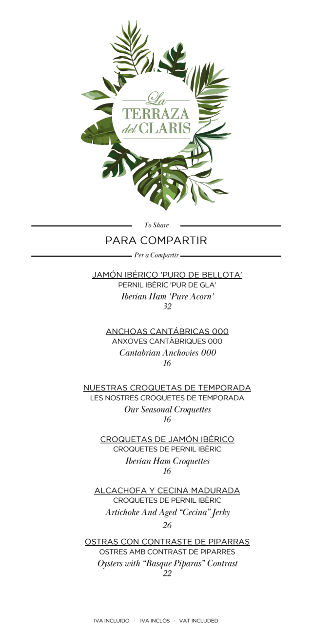 Apreciada Pilar, Nos complace enormemente que haya disfrutado del trato personalizado y de la calidad de nuestros productos, seleccionados cuidadosamente para ofrecer una cocina mediterránea innovadora. Es magnífico que haya apreciado el esfuerzo que ponemos en nuestro servicio, en un ambiente elegante y acogedor en la terraza del emblemático Claris Hotel & Spa 5*GL, con vistas al clásico distrito del Eixample en Barcelona. Confiamos en verle de regreso en nuevas ocasiones. Un cordial saludo, Michele Camolei, Restaurant Manager