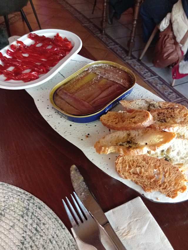 - Anchoas del cantábrico serie oro acompañadas de pimientos doblemente asados y tostas de hogaza