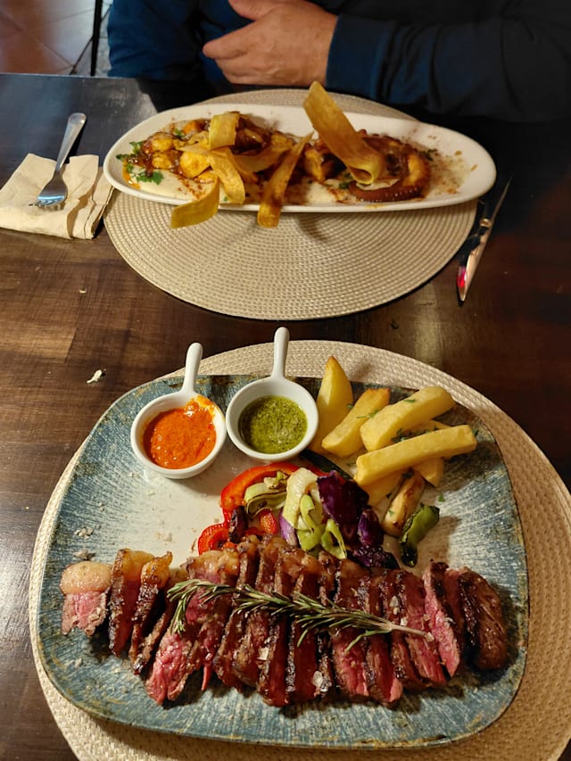 - Picaña con patatas confitadas y mojo picón rojo y verde