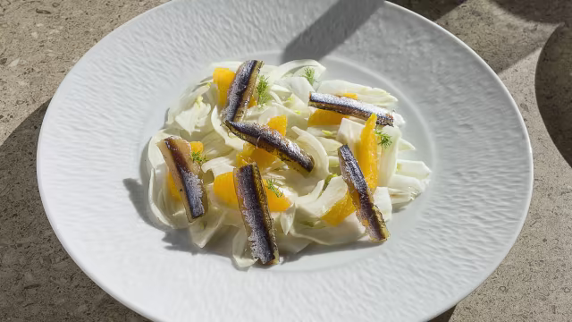 - Veli di tonno rosso con lamelle di arance, olive nere della valle del belice, cipolle rosse agrodolci, capperi di pantelleria e maionese alla bottarga