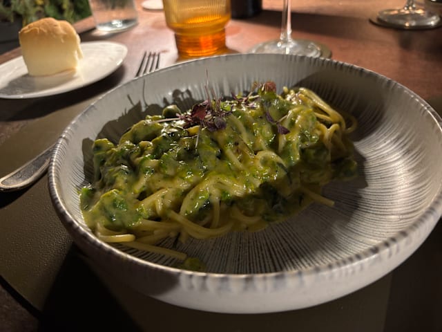 10/10Lunch in a beautiful setting under the grape arbor! The food was fantastic, from the Neapolitan Fried Spaghetti Primi to the sliced beef over arugula. And then, the Neapolitan classic gelato pairing - chocolate, strawberry and vanilla. A perfect Sunday brunch!