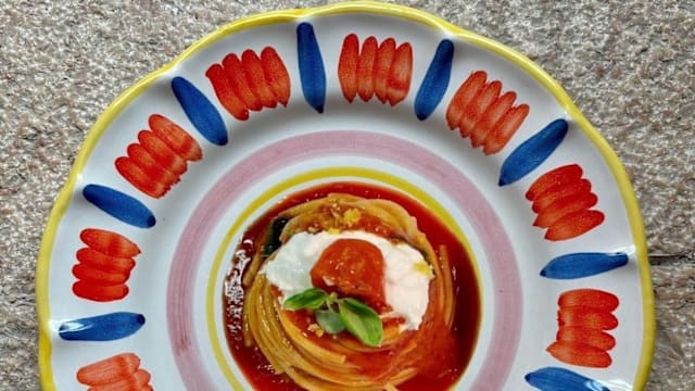 Spaghetti, pomodoro San Marzano, burrata, scorza di limone e basilico