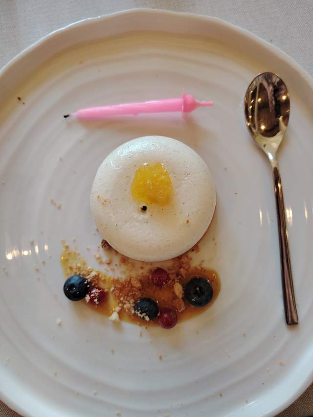 - Crispy octopus on a delicate buffalo stracciatella sauce, chive flavoured olive oil, yellow cherry tomatoes preserved in sea water, crunchy celery salad and gin and lime foam