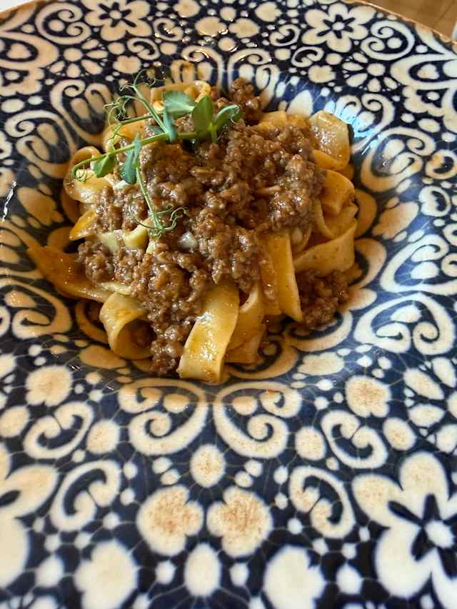 - Our fresh eggs artisanal tagliatelle with local certified chianina beef meat sauce