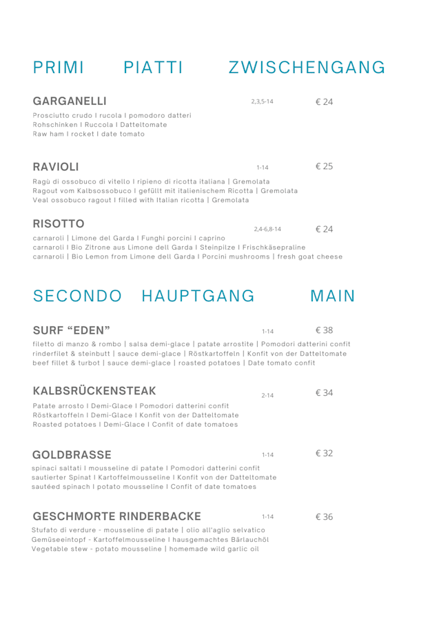 ItalianMediterraneanEuropeanContemporary cuisineFine DiningGluten freeLactose intoleranceVegetarian dishesValet parkingWheelchair AccessibleWifi