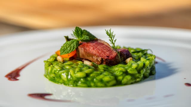 - Filetto di manzo & rombo | salsa demi-glace | patate arrostite | pomodori datterini confit