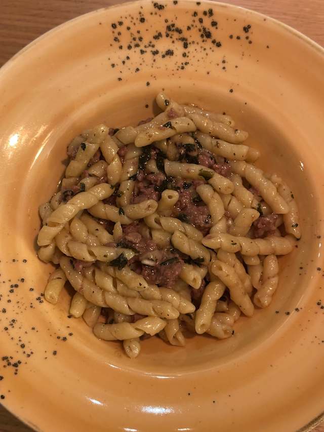 - Maccaruna freschi con salsiccia ubriaca e cavolo nero stufato