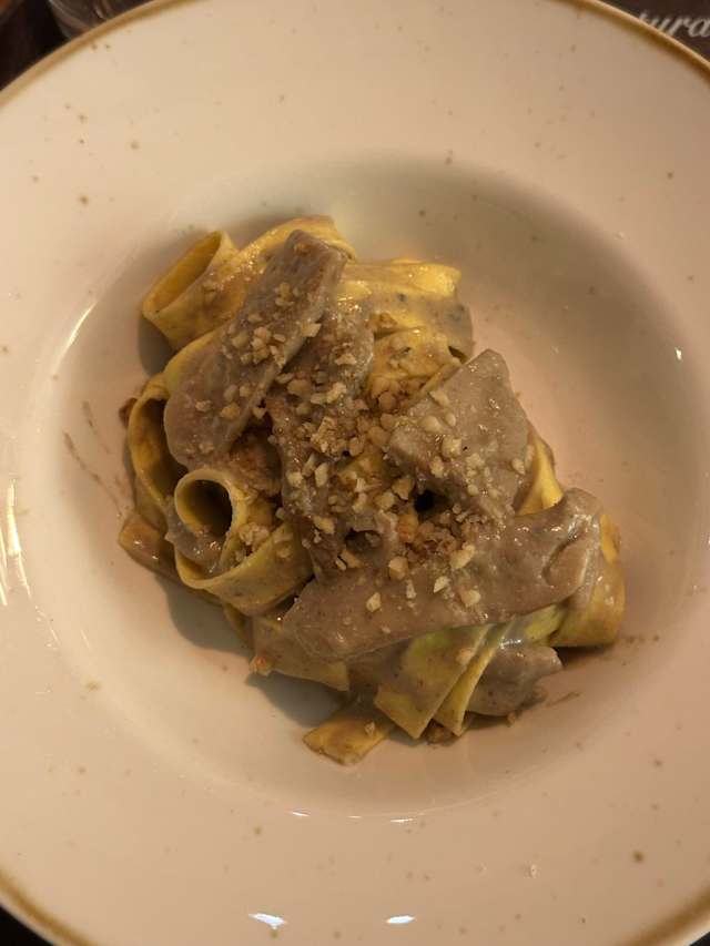 - Pappardelle con crema ai funghi porcini, roquefort e noci tostate