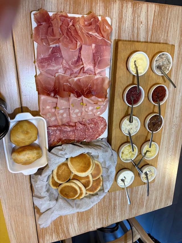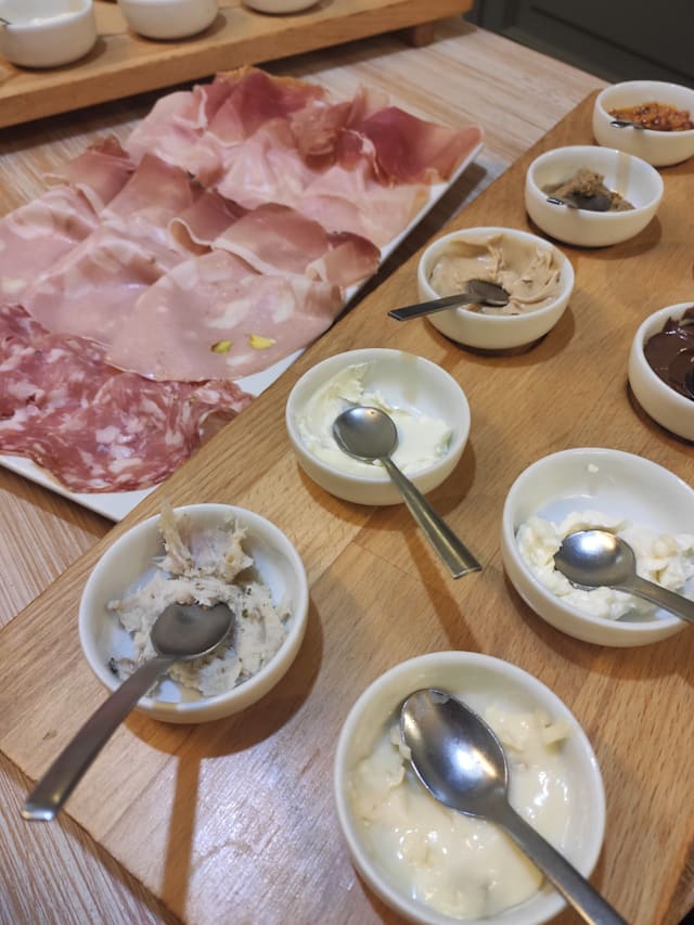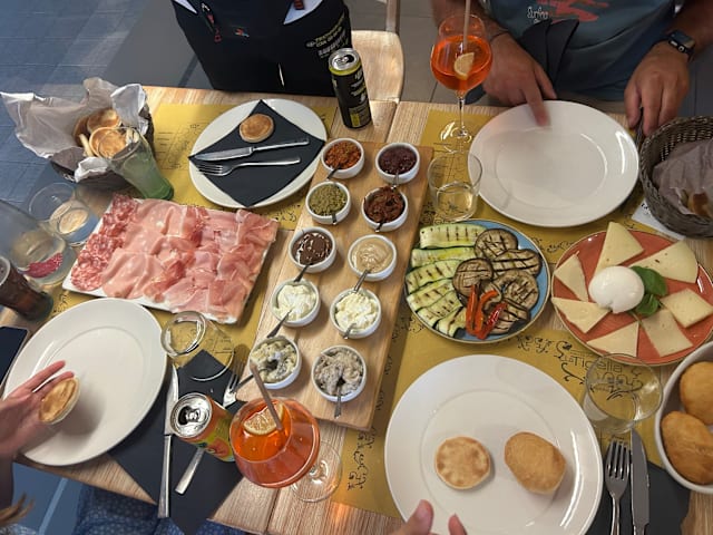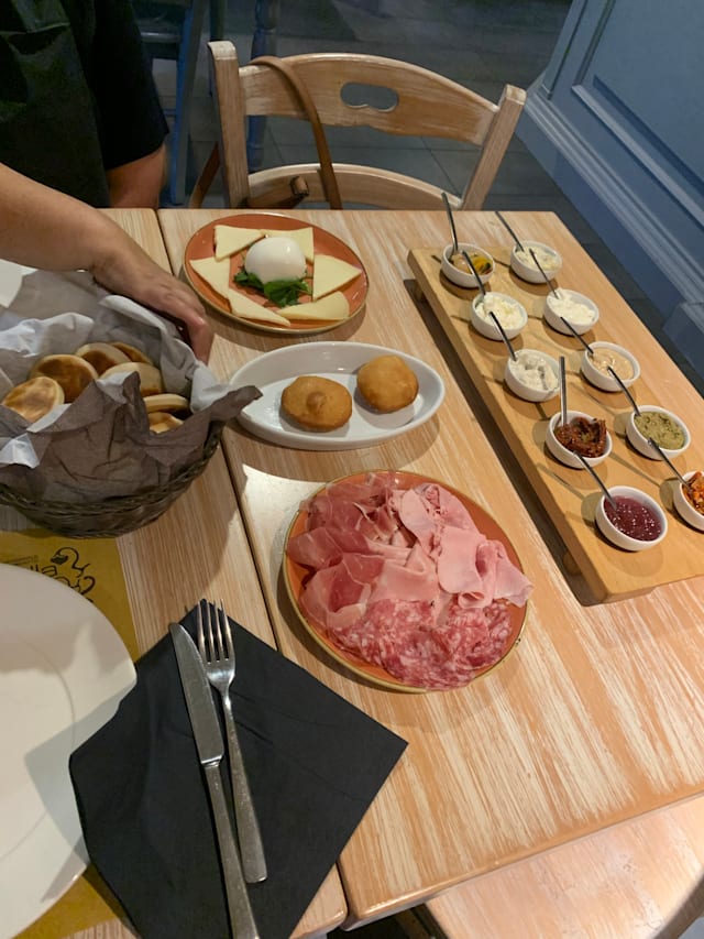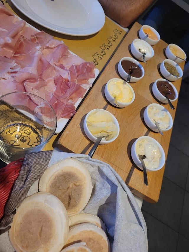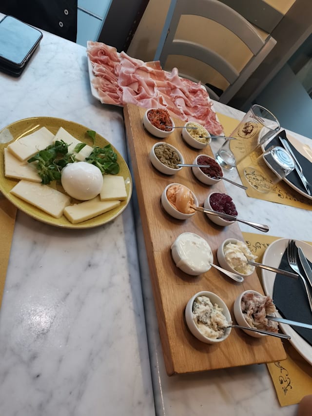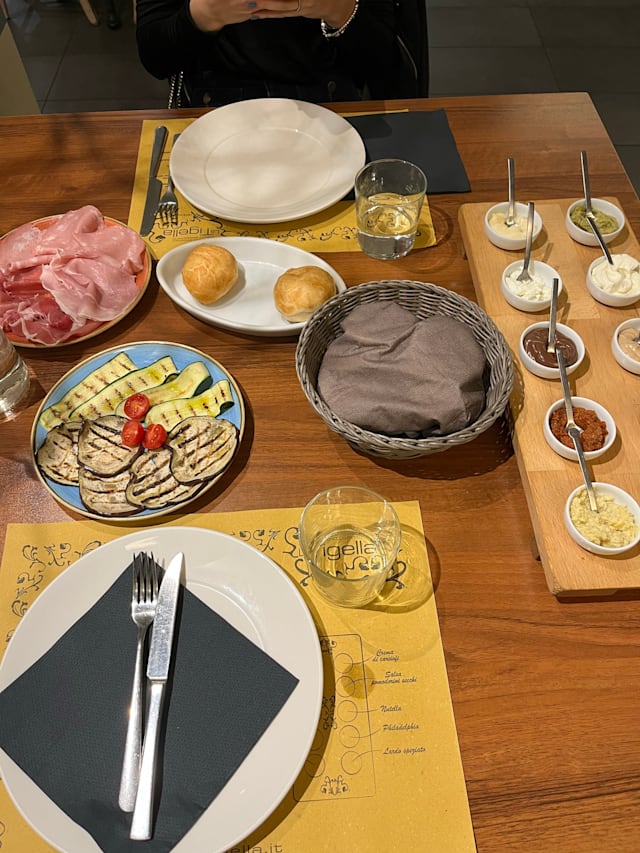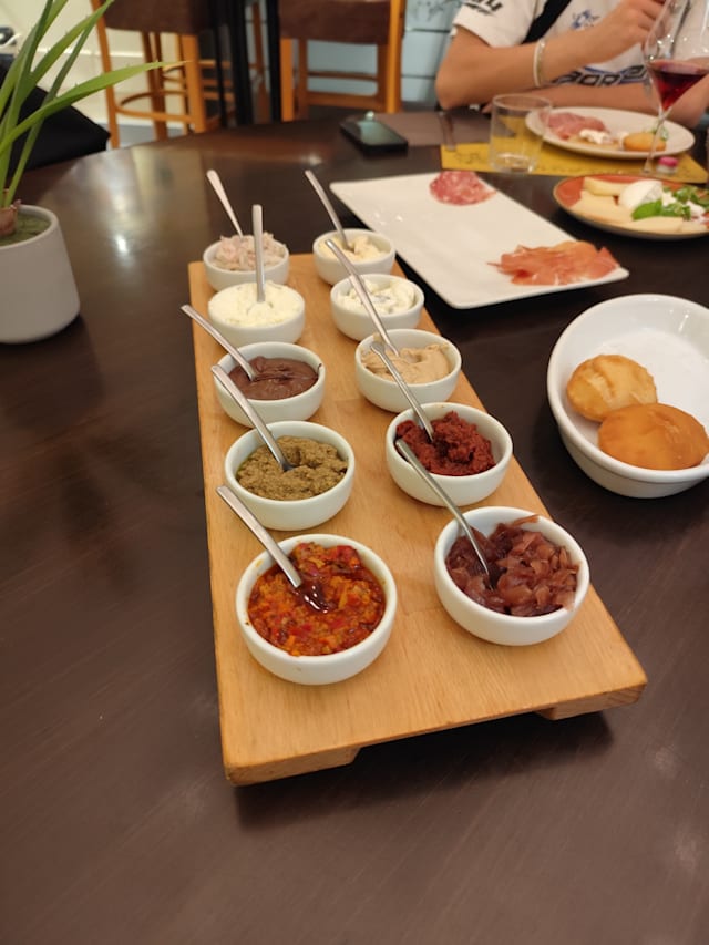 9.5/10It was a great surprise! Soft warm tigellas served with a multiple choice of sauces, vegetarian ones for us, closing with some sweet tastes like pistache and white chocolate creams. Cozy place with an unexpected well balanced combination of small tables and big ones for group events. Enjoyed so much!!