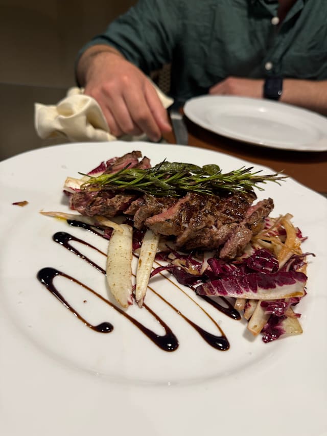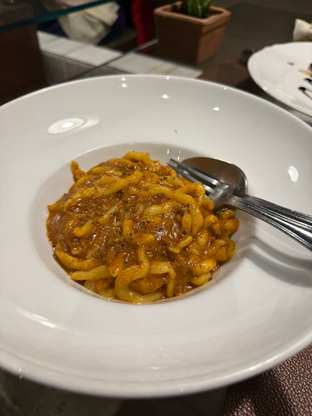10/10I booked last minute and had no idea what to expect. The restaurant is beautifully designed and I enjoyed every detail. It is elegant, simple and unfussy. I sat in the glass box so you are inside but also outside. Service was relaxed and friendly. And the food was amazing. I was by myself, staying for one night for work and didn’t want a huge meal so just had a secondo but it was very generous and very delicious. The price was reasonable for the quality of the food which was excellent. As always in Italy I wished the insalata mista was a bit more interesting but the tagliata and patate arrosto were delicious and melt in the mouth. I was staying at Locanda della Fratta and the road between the two is perfectly lit to walk back late at night. For a night by myself it couldn’t have been better.