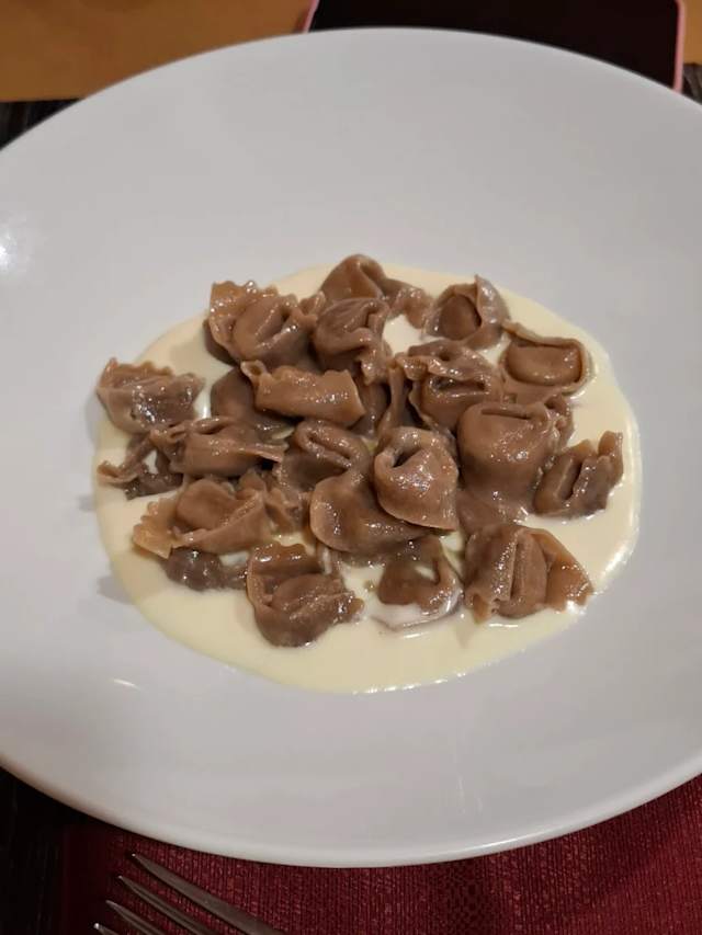 - Tortellini neri al tartufo con crema di parmigiano