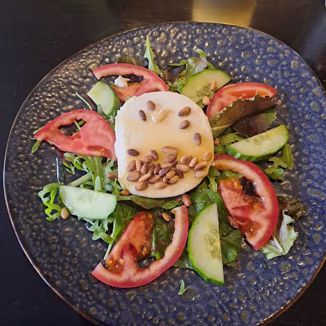 - Salade met warme geitenkaas, honing en pijnboompitten