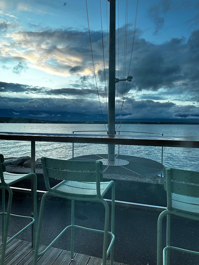 10/10Wonderful views across Lac Leman, looking back to Geneva. Food, wine and wait staff were all excellent. Truly recommend.