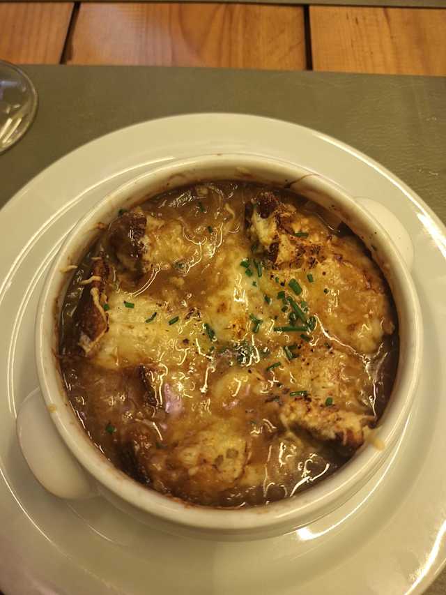10/10+1One of the best restaurant experiences I’ve ever had in Barcelona. The ambience is quite nice with elegant decoration and good music. The staff is super welcoming, friendly and attentive. And the food is top notch, perfect place to taste delicious traditional French dishes like boeuf bourguignon, blanquette de veau, ratatouille, onion soup and more. First we got some complimentary appetizers with beetroot and goat cheese which was a very pleasant gesture. Then we had cheese platter with a good selection of French cheese accompanied by marmalade, butter and bread. Our waitress explained everything nicely. For the main course we tried onglet limousin and blanquette de veau. They were both rich in flavor and the portions were satisfactory, unfortunately at the end we had no room left for dessert 😁 I would say if you are looking for a French restaurant / a place to have a cozy and delicious meal, look no further.