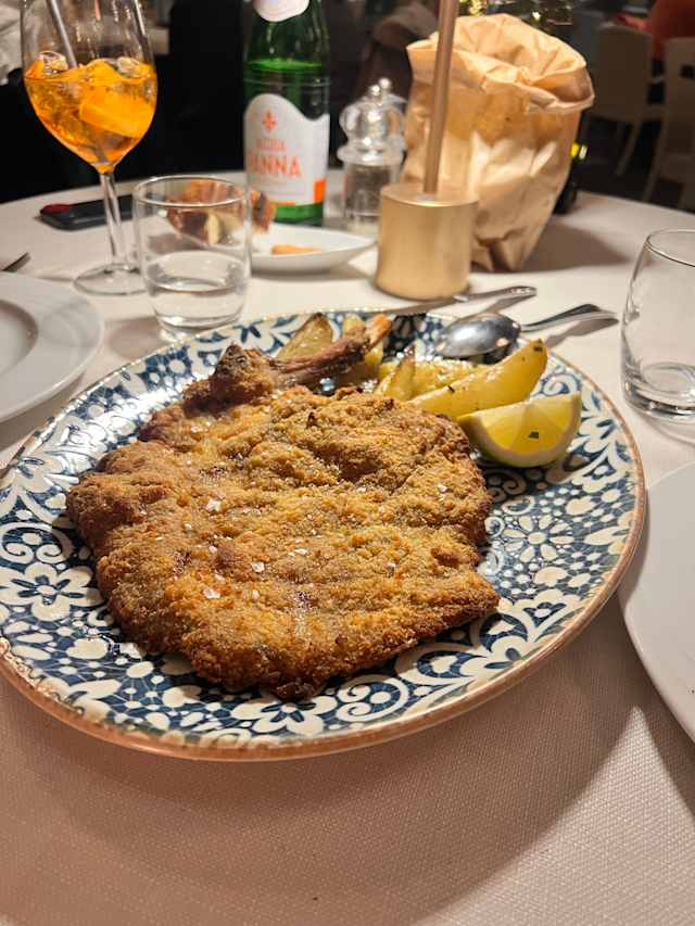 - leggermente battuta e fritta in burro chiarificato, servita con pomodorini e rucola